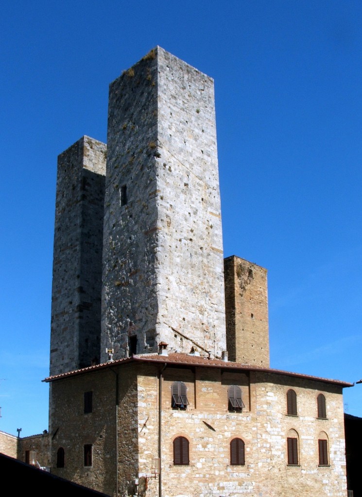 Sandiminjano: Piazza del Duomo: kule Salvucijevih, zvane Bliznakinje (XIII) 48m, 20. Sept 2007
